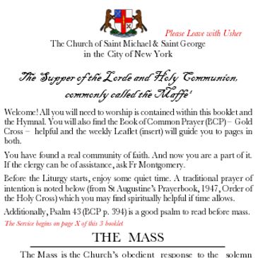 Our Service follows the Traditional Liturgy of the service of Holy Communion in the Book of Common Prayer (1928) and when the Ordinary (Kyrie, Gloria, Sanctus, Benedictus Qui Venit, Agnus Dei) are not sung in Latin or English by the choir according to a choral setting, they lead us in a congregational setting byJohn Merbecke (1510-1585)